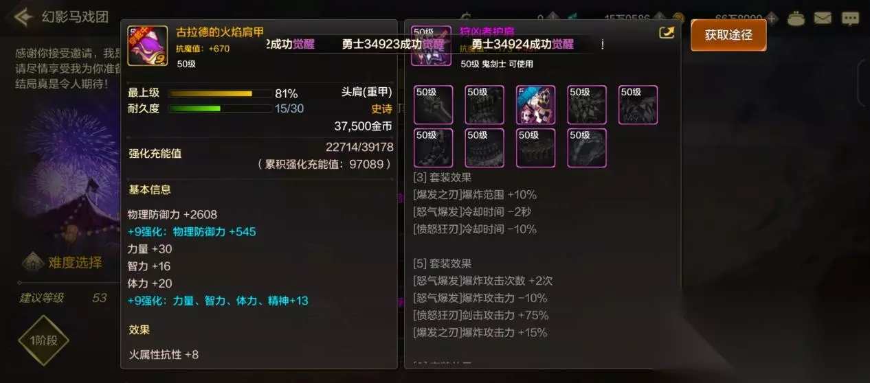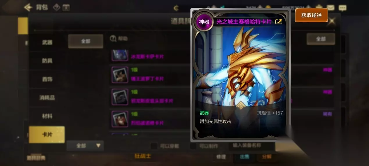 武器:火(烈焰彼诺修)/光(光之城主)属性攻击(推荐火) 首饰:火强(机械牛)、全属性强化(小丑艾尔) 头肩:攻速(白昼之珊蒂) 鞋:生命值上限(大胃王)、移速(猩红猫妖) 腰带:生命值上限(大胃王) 上衣裤子:力量(机械臂捷克) 基本只需要考虑输出能力的附魔。至于推荐火属性的理由,因为首饰的火强附魔已经有10强的神器卡了,但光强目前没有,走其他强化只有神器卡全属性强化+9的,会亏一点。 最后之所以没有提勋章、装扮、徽章、宝珠,因为这基本是不用选择的,除了有力量选力量,统一选择更高稀有度的即可。 结语 好了,