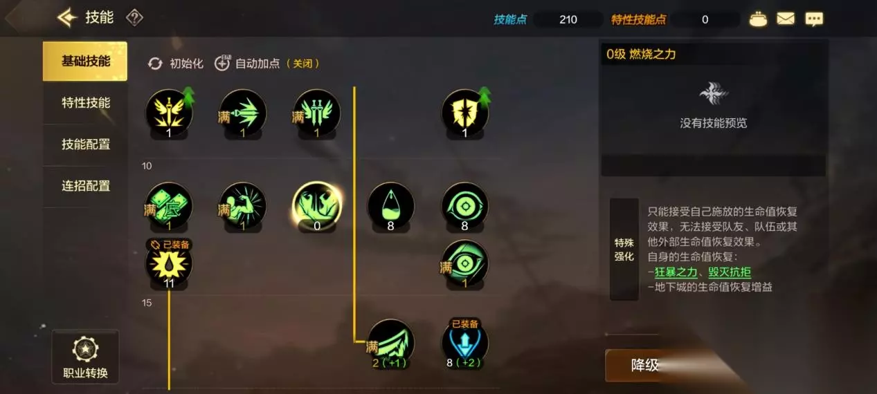 PS:转职中的燃烧之力不要点,拒绝其他回复手段,弊大于利。特别是未来团本,一个拒绝加血的狂战士,能让奶爸奶妈急火攻心。