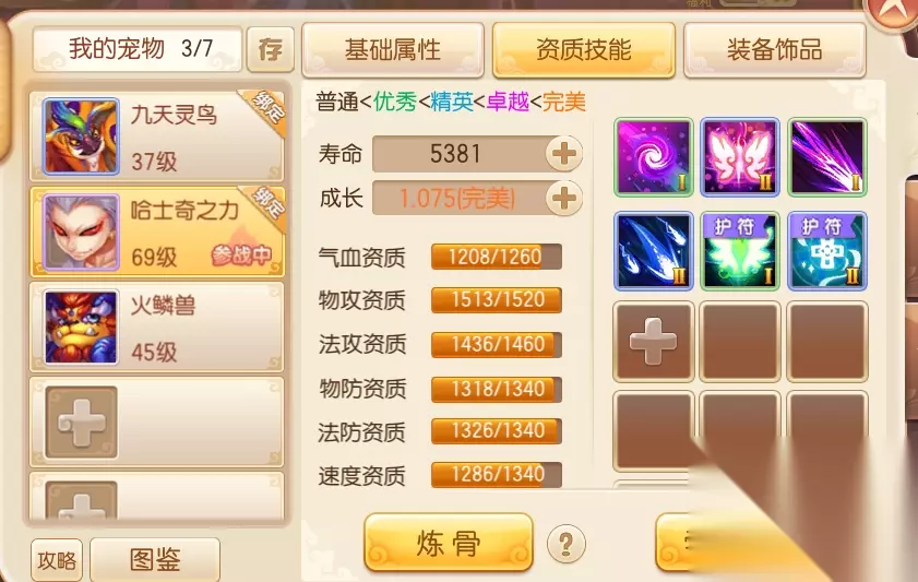 宠物的技能上限为12个,其中主动和被动技能最多10个,剩余2个为护符技能槽。打书前需明确宠物的培养方向,例如隐攻宠需搭配隐身、连击等技能,而血耐宠则优先选择重生、格挡等生存类技能。技能替换存在随机性,建议分阶段打书,先确保技能数量达标,再逐步优化技能质量。若需保留特定技能,可使用元宝进行铭记,避免被意外顶替。 内丹分为人阙、地阙、天阙三个镶嵌位,需根据宠物类型选择对应的内丹属性。例如变异宠物可转化为人丹,神兽可转化为金丹。内丹属性与技能书的协同效果能显著增强宠物的战斗表现,因此建议在打书完成后逐步完善内丹配置。