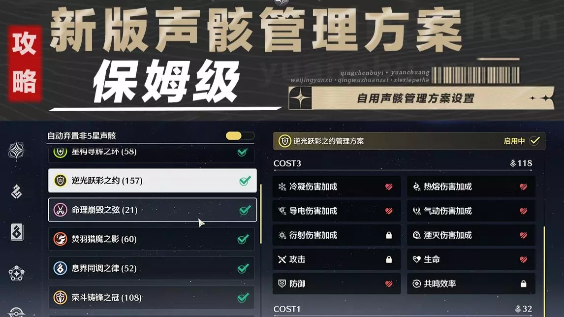 本文为鸣潮3.2玩家带来全网最细的声骸管理方案分享码,还附带该分享码的使用教学,能帮玩家解决背包已满的问题,优化声骸管理。