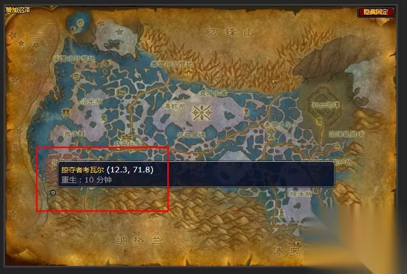 在游戏《魔兽世界怀旧服》中,掠夺者考瓦尔在地图赞加沼泽的坐标(12.3,71.8)处。掠夺者考瓦尔是一位67级的稀有食人魔,玩家完成与其同名的任务时需要击败他来获取各类战利品。