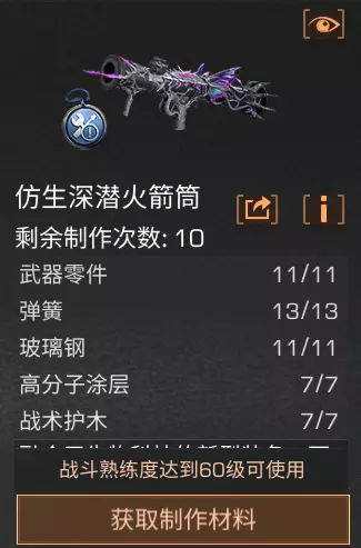 仿生深潜火箭筒在制作60级后可开启制作