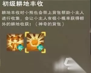 蓝抱抱熊的最高等级为35级,技能不变。 黄抱抱熊的最高等级为45级,技能不变。 棕抱抱熊的最高等级为55级,拥有新技能——初级耕地丰收: 主人在收获耕地时有极小概率获得额外收获(即耕地收获暴击)