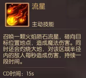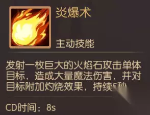 他也拥有2个主动技能——炎爆术和流星,炎爆术是单体法术攻击,对敌人有灼烧效果,并持续5秒。流星是群体攻击,对攻击区域进行灼烧多秒,所以拉怪后尽量使目标在五火球教主的攻击范围,提高输出量。同样的不建议玩家让五火球教主学习技能,一是浪费资源,二是可能会遗忘他本身的技能。
