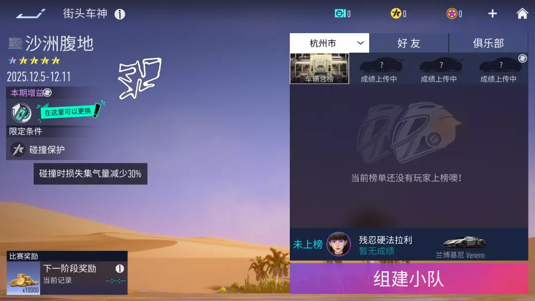 街头车神『海岸风暴·逆向』将于2025年12月4日23:59结束,街头车神『沙洲腹地』将于2025年12月5日8:00开启。本期街头车神增益为充能装置、加速装置,特殊规则-碰撞保护:碰撞时损失的集气量减少30%。