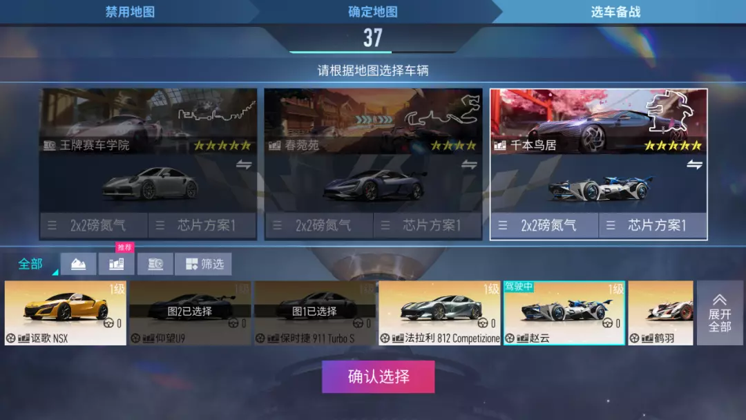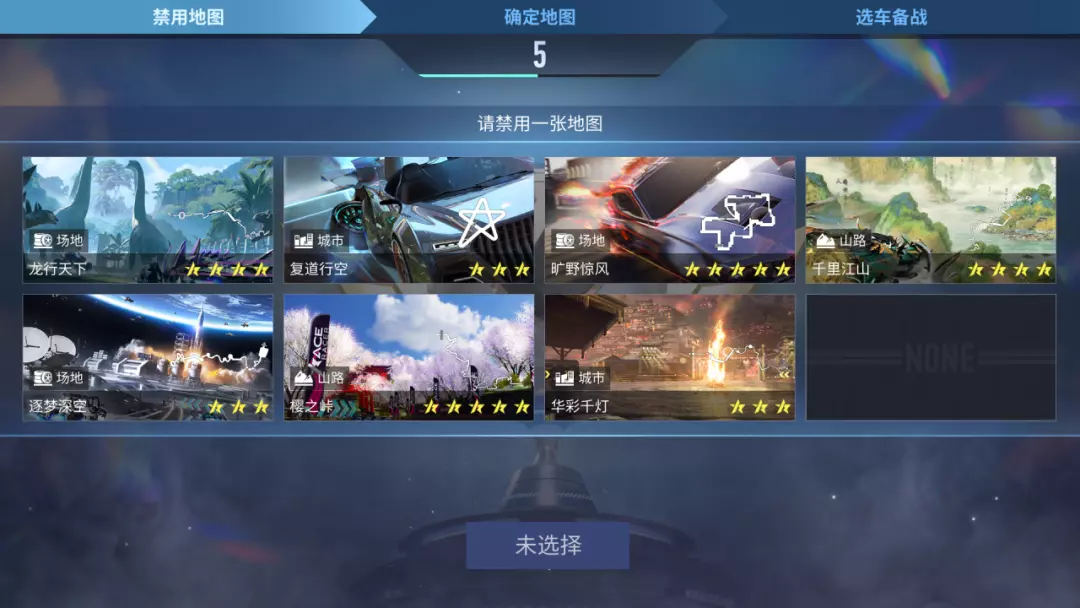 巅峰个人赛:采用合并选车形式,玩家需要在一定时间根据3张地图完成3台车辆选择,以及芯片配置。
