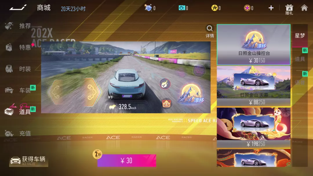 [7] 星梦商店:11月28日~12月18日星梦商店限时开启,全新联动商品:日照金山操控台日照金山 天幕。还有更多的操控台、天幕、大厅同时返场,车手们一定要来看看呦~