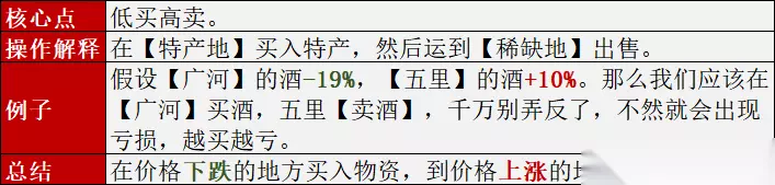 PS:这就是为什么要争取在白天多跑几趟船的原因,资金量越大,越有助于我们买入更多的物资。 【划重点】如果资金量太大,买完特产还有钱的话,这里建议两个做法(自己比较一下哪个更划算): 1、买完特产,买跌幅第二的物资,出发去今天两个物资价格都是+%的地方。 2、或者,直接全部买入跌幅第二的物资,出发去今天该物资价格【+4%】至【+8%】之间的地方。【商会冲榜】如果商会要冲榜,建议按照上述做法,养肥一个能氪的成员。 因为这个游戏是利滚利,就是后面跑船的利润是翻倍上的。全部人一起利润最大化的话,反而会出现抢物资的情况,还不如将资源集中在商会大佬身上。 最后,元宝拉满什么的就不用说了,有条件氪金的自行选择氪金。但这个活动还是要大家配合,配合得好,零氪商会也能拿财神。 攻略相关内容谨代表玩家立场,请各位掌柜按实际情况采纳其中意见。