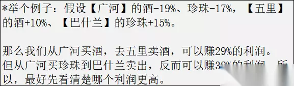4、有时候买特产不一定能最大化利润,买的时候可以看一下跌幅第二的物资以及其稀缺地的涨幅。计算一下,看看哪个能赚更多。