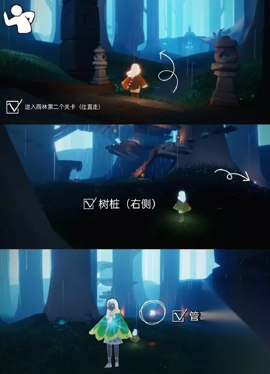光遇集结季先祖位置?集结季先祖在哪里?光遇4月28日上线集结季后,新增了6位先祖,来一起看看他们都在哪里吧! 1:茫然植物学生(先祖) 在雨林的第一个场景就是开了门之后,然后进入往左边飞行,在树桩后面.