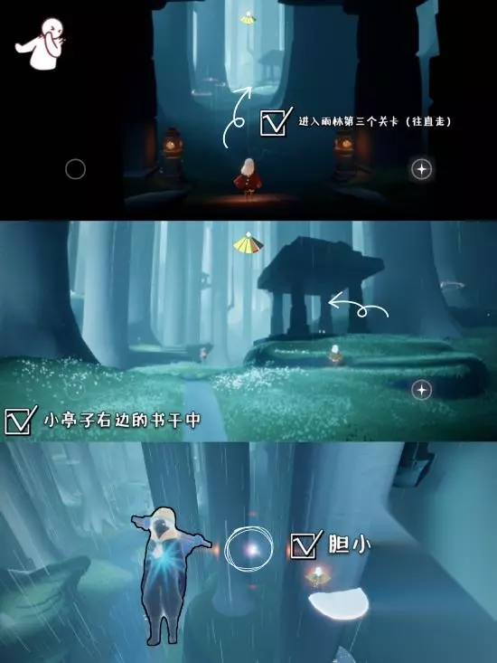 4:正步冒险家先祖 在亭子这里然后往上飞行,随后可以在对面的高处看到一个先祖