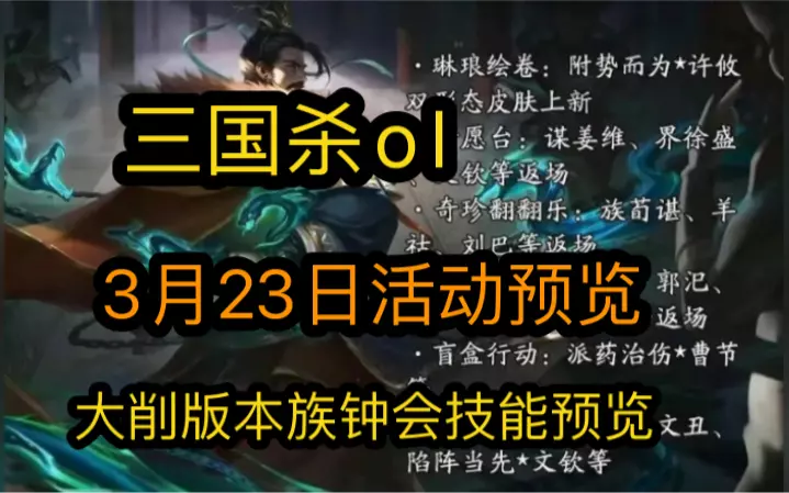 这是三国杀OL7.13-7.21蜀中超量活动指南,有二杨秒杀、武将返场折扣,可通过兑换码拿奖励,酒馆首发刘焉动态包,还有孟达等武将可购,盲盒碎片、传世玉玺可兑换武将、动态皮肤等丰厚奖励。