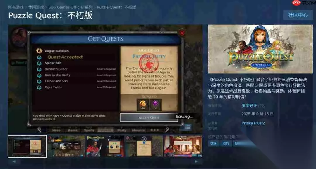 经典三消rpg《战神的挑战:不朽版(puzzle quest: immortal edition)》现已正式上线pc、xbox one、xbox series x|s、ps4、ps5及switch平台,steam国区限时特惠价仅需46.4元,目前收获玩家“多半好评”评价。