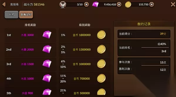 各位冒险者可消耗“挑战标志”来挑战其他玩家,获胜后可获得积分及金币奖励,竞技场还会按照各位冒险者的积分排名来发送“赛季”奖励,奖励包括排名的钻石大奖以及排名区间的金币大奖哦!