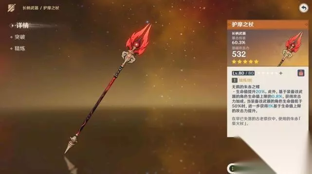 以上就是原神护摩之杖突破材料有哪些的相关分享,护摩之杖武器拥有独特效果,不仅为角色提升20%生命值,还能提升最大生命值的0.8%攻击。