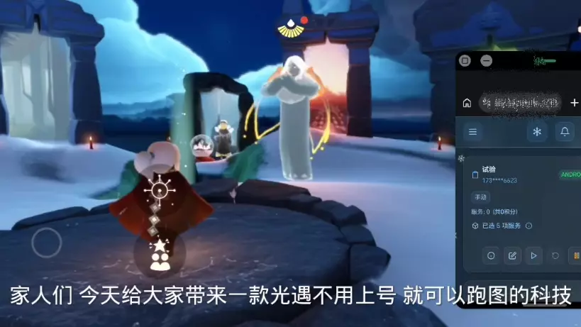 这是全网首发的光遇桂鸽入门教程,展示了使用辅助完成每日任务、升级斗篷等操作,同时提醒玩家这类辅助操作有封号风险,还介绍了辅助的防封等自带功能。