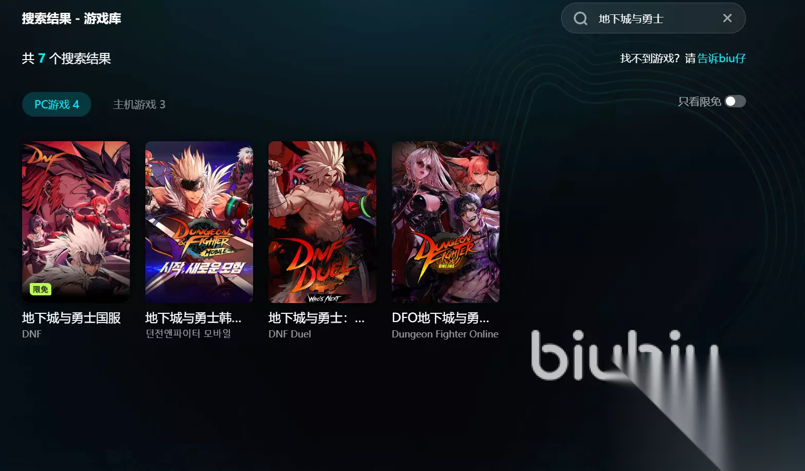 【biubiu加速器】最新版下载 点击下载 《地下城与勇士》是一款横版动作网游,被玩家们亲切称为DNF。游戏中你将化身为各种职业的冒险者,从鬼剑士、格斗家到法师、枪手,每个职业都有独特的技能与炫酷连招,打击感拳拳到肉,刷图简直停不下来。地下城关卡里怪物成群,等着你去清场,爆装备的瞬间更是让人欲罢不能。除了热血的战斗,游戏还有丰富的养成系统,你可以打造史诗装备,挑战深渊副本,体验不断变强的爽快感。再加上竞技场的PK对决,操作与策略并存,高手之间的对抗简直比武侠小说还精彩。无论是单刷爽快,还是和伙伴组队开荒,DNF都能让人感受到“打怪升级爆装备”的极致魅力,简直就是动作游戏爱好者的天堂。