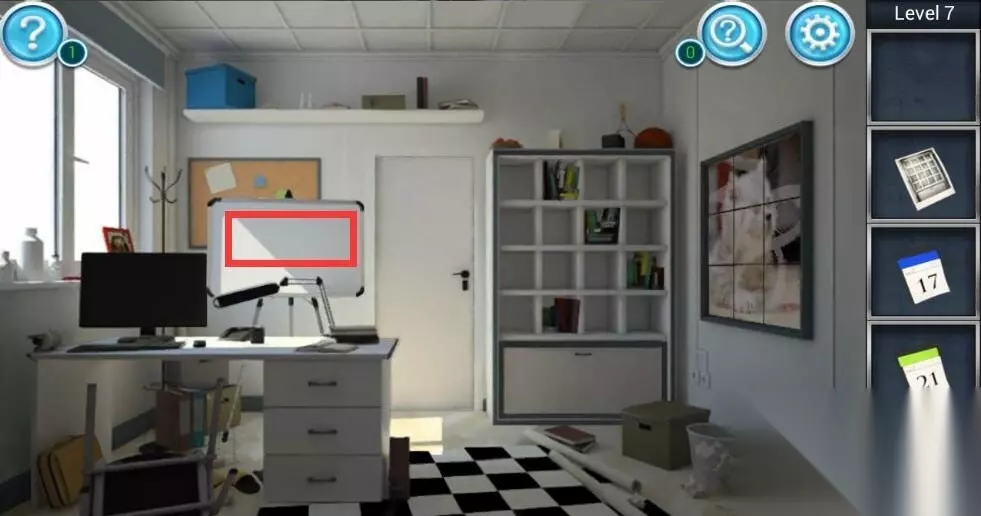 《密室逃脱3逃出办公室》第7关攻略 第7关攻略 1、点击右侧的书架,将书移走,得到二张图片和一个日历。