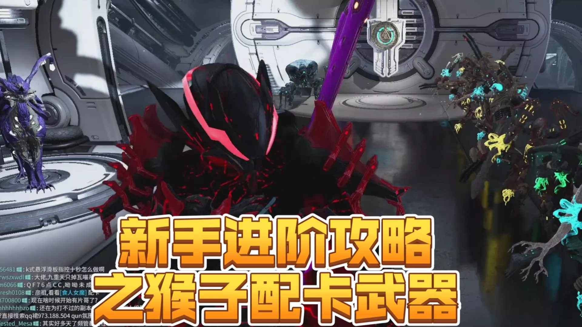 这是针对《星际战甲》纯新手的内容,展示了游戏内战甲MOD配置、武器选择、战甲选择、同伴配备等界面,能帮助新手了解《星际战甲》的基础配装与装备选择相关入门内容。