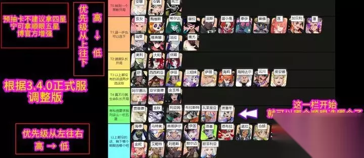 众神派对强度表2024 1、众神派对角色强度排行榜T0如下:安娜、女娲、托兰。 2、T1如下:玄女、梅维斯、希尔达、赫拉、宙斯、雄小鬼、泰伊、催佛、莲、加贝利、潘、瑞雯、雅典娜、法拉、蚩尤。 3、T2如下:奥利、大和、优姬。 4、T3如下:舒、西西莉亚、伊菲、三姐妹、萨丽、海莉、海姆达尔、云川、席安娜。 5、T4如下:阿尔概比、亚罕莫德、金玉瑶。 6、T5如下:贾维德、金球、利亚姆、布拉斯特、瓦莱里亚、波塞冬。 7、T6如下:海德、马特奥、英低萨尔、伊莲、洛基、恩布拉、诺拉、仓颉、孙悟空、佐拉、哪吒、金妮、艾略特、刘易斯、那尔迈、欧菲利亚。 PVE节奏榜