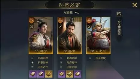 解析:这套阵容中鲁肃和周瑜都是可以为敌方附加debuff的,周瑜作为这套阵容的核心可以非常稳定的搭配介绍上异常伤害进行高额的输出,太史慈也可以通过不断的蓄力,对对手造成无法攻击的debuff,是一套可以轻松的使用debuff体系进行高额输出的队伍。