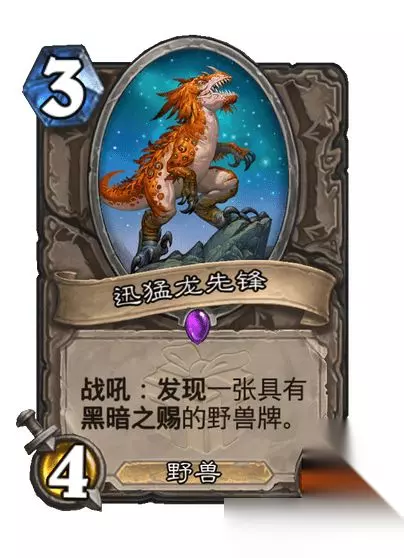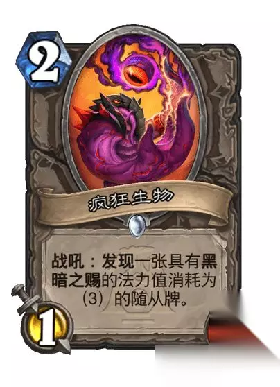 史诗随从,3费4/2 野兽 战吼:发现一张具有黑暗之赐的野兽牌。
