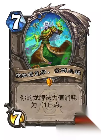 传说随从,7费7/7 你的龙牌法力值消耗为(1)点。
