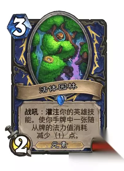 稀有随从,3费2/3 战吼:灌注你的英雄技能。使你手牌中的一张随从牌的法力值消耗减少(1)点。