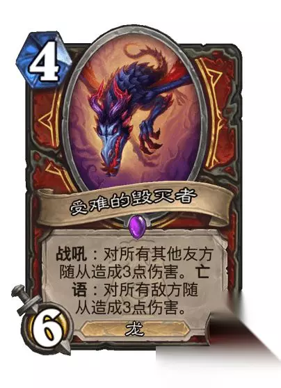 史诗随从,4费6/6 龙 战吼:对所有其他友方随从造成3点伤害。亡语:对所有敌方随从造成3点伤害。