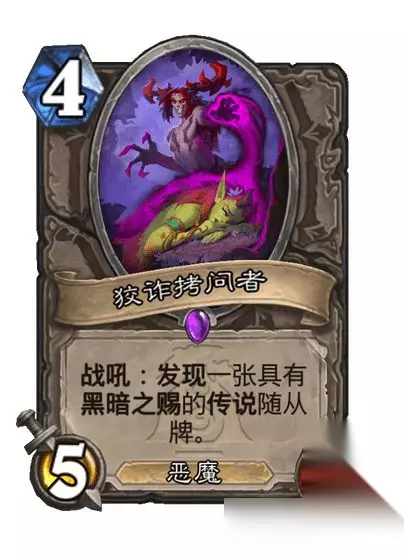 史诗随从 4费5/4 恶魔 战吼:发现一张具有黑暗之赐的传说随从牌。