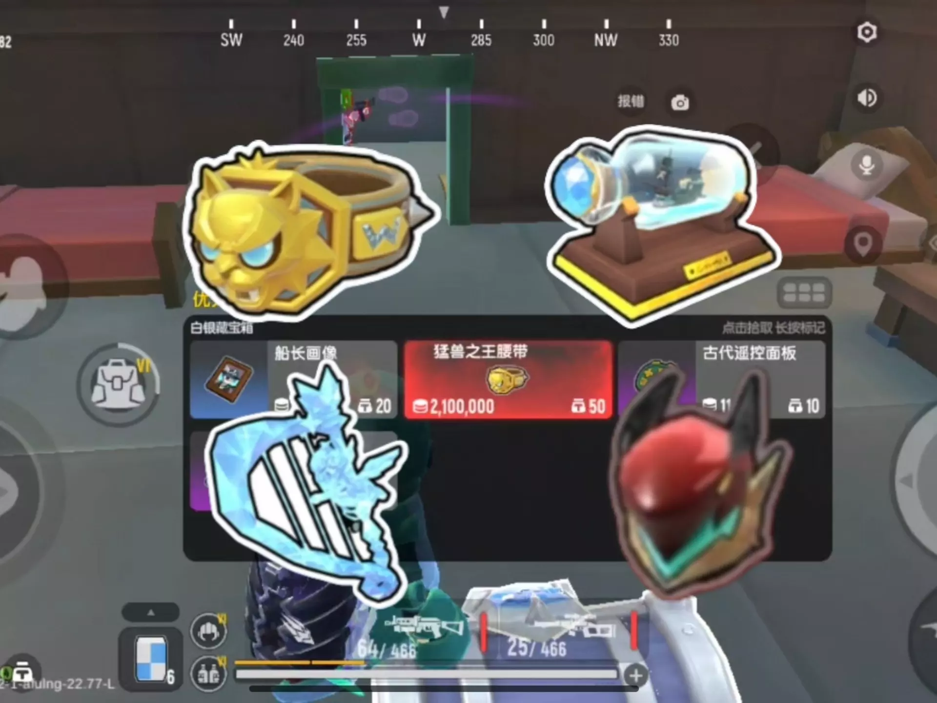 这是射击游戏香肠派对的游戏内容,玩家组队击败远古呆呆龙王后开启宝箱收获丰厚道具,同时玩家发出疑问:用苹果换两个竖琴是不是亏了?
