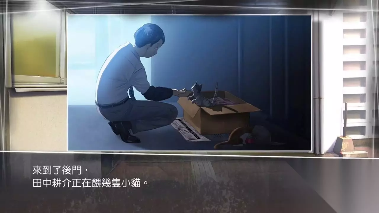 调查公布栏可获知眼镜仔消息 冤家路窄,居然在这里碰到了之前学校遇上的佐滕老师,略微恐吓后询问: 眼镜仔 √田中耕介 佐滕老师任教的科目 从佐藤老师的口中,得知田中是大庭高中首屈一指的资优生,还有头发稀疏的特征。 再次移动至市民生活辅导课,向男职员询问: √田中耕介 市民生活辅导课 对方亲切地提及田中自尊心很强,继续询问: 田中所在处 原来眼镜仔在后门外面照顾弃养的猫咪,移动至后门外,果然见到了正在给小猫喂食的眼镜仔。