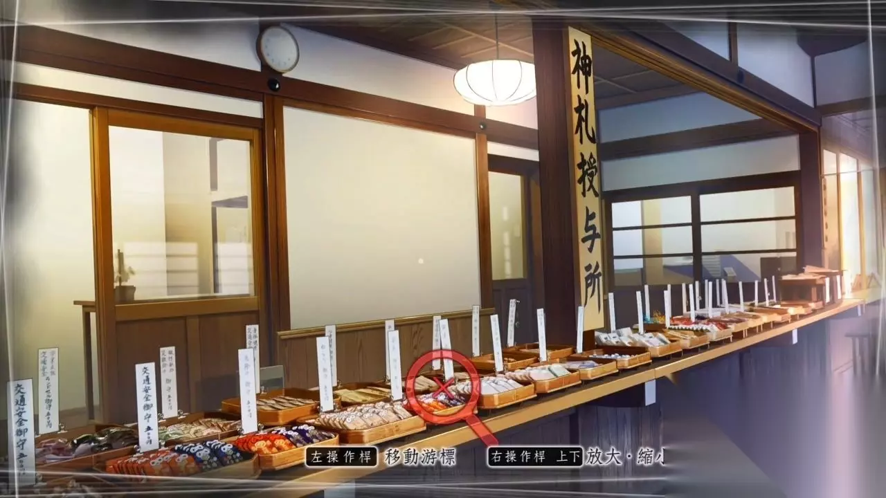 调查这里就能发现通往镜池的路 调查镜池水面,看着女高中生们进行恋爱占卜,主人公的脑补能力发挥至Max,居然完整补全十五年前亚弥和朋友来此占卜的场景。正在冥想间,熟悉的声音传来。之前澡堂遇到的老大爷泉小云居然出现在这里,当然要询问了: √为什么会在这里 小云的真实身份 在老爷子的怂恿下,主人公移动至社物所,调查台面上的货品,找巫女购买用来良缘占卜的净纸。