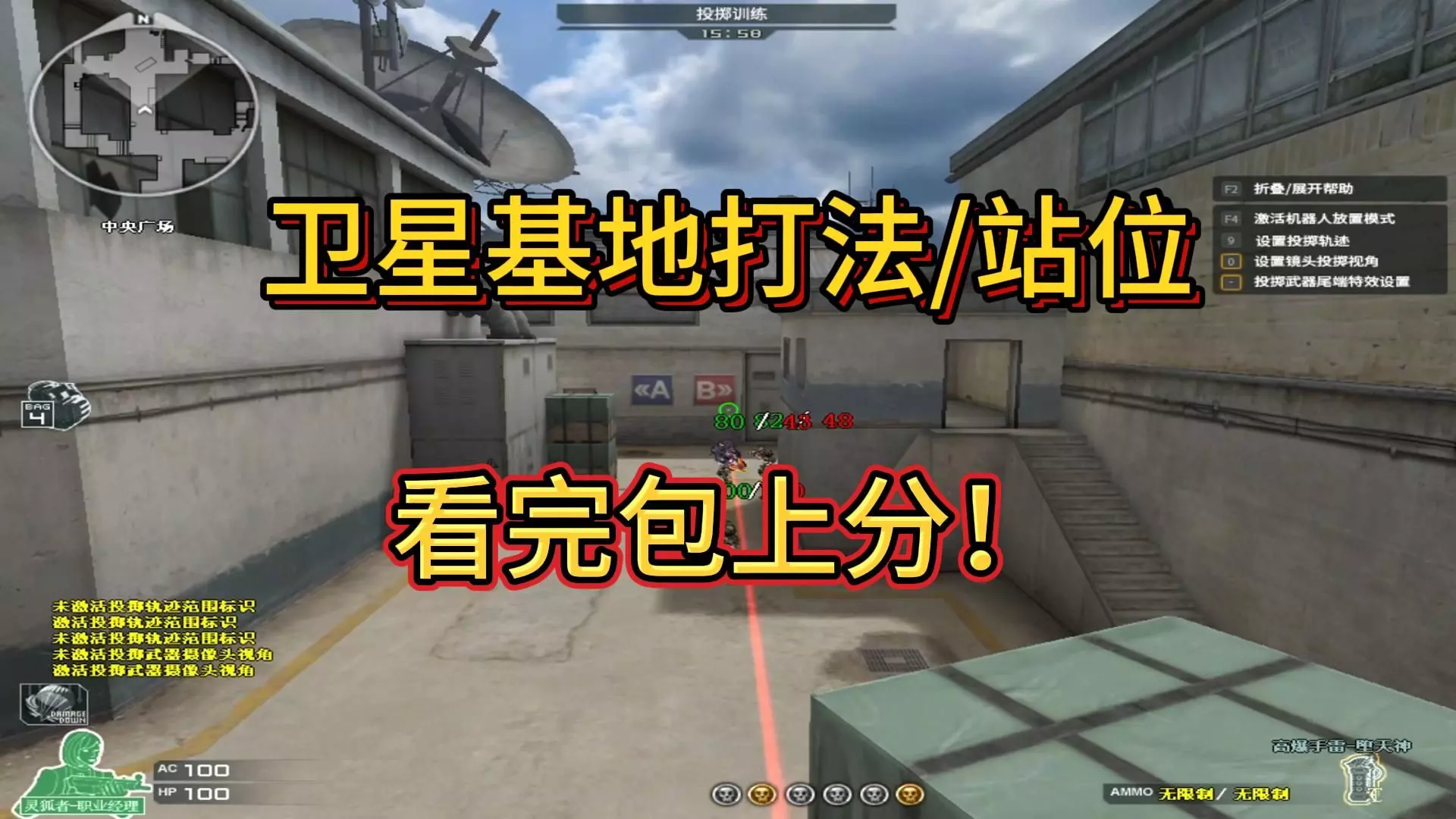1024×768分辨率,默认十字准星;投掷最好能使用小模型的且可以快切的雷闪烟,否则有些点位无法达到视频里所呈现的效果。