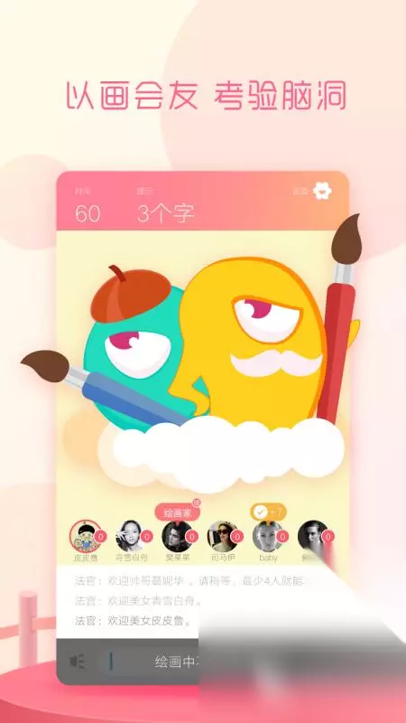 是一款集创意与互动于一体的社交游戏,玩家可以展示自己的绘画天赋,用画笔描绘出各种有趣的词语,其他玩家则通过观察画作猜测答案。游戏不仅支持实时在线互动,还引入了语音房间功能,玩家可以通过连麦互动,享受声控天堂的乐趣。无论是90秒画猜还是加时卡画,都能让玩家在轻松愉快的氛围中释放创意,享受绘画与猜测的乐趣。 高速下载 普通下载 由于平台上你画我猜类游戏仅有两个,接下来小编为大家整理了类似的绘画类手游,供大家选择! 3、《画中人》