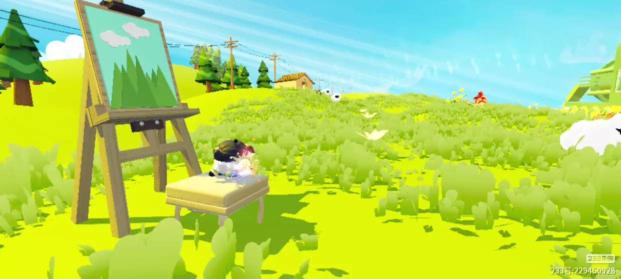 嘻嘻,也是到外面去了,大大的画板,旁边坐着一个小小的我,哇塞,竟然有一个洁白的小羊耶,草地绿油油的,还有大大的房子,竟然想到了我的故乡,作者做的好细节呀