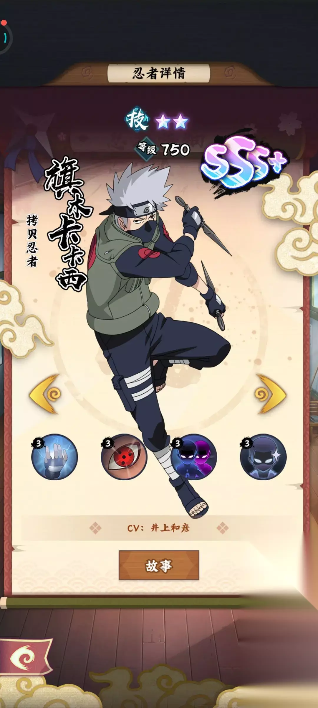 卡卡西这个角色本身人气就很高,同时也很推荐大家去练习,他比较适合走的是易伤流派,而且在获取方面比雷影要容易,也是初期战斗的助力,初期来说他的培养成本更低,能带来的整体效果突出。