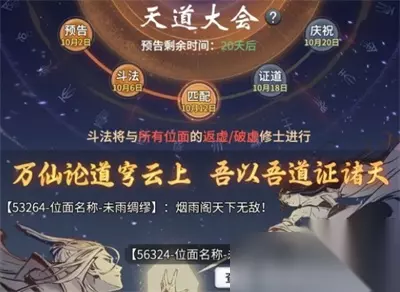 一念逍遥天道大会怎么玩?“天道大会”是即将上线的一种新玩法,在此活动中,玩家需要进行斗法和证道,奖励非常丰富。下面小编就为大家带来了《一念逍遥》天道大会活动玩法详解,感兴趣的小伙伴们一起来看看吧,希望能对大家有所帮助。 《一念逍遥》天道大会活动玩法详解