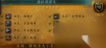 接下来就是让你去钓各种巨型鱼一共700条,比起当年2-3万钓乌龟这真的不算什么,钓完这700条之后,就可以解锁图纸,造完后,里面的NPC会给你提供任务让你去潘达利亚的卡桑琅请纳格帕特来。这里请注意!要邀请到纳格帕特,钓鱼一定要700,没有700是不会触发后续任务的。
