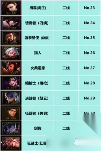 二线职业有:街霸、诱魔者、蓝拳圣使、猎人、女柔道家、暗枪士、决战者、征战者、剑影、狂战士。 三线