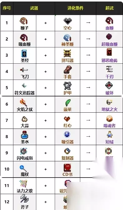 吸血鬼幸存者合成表2024 一、合成表一览
