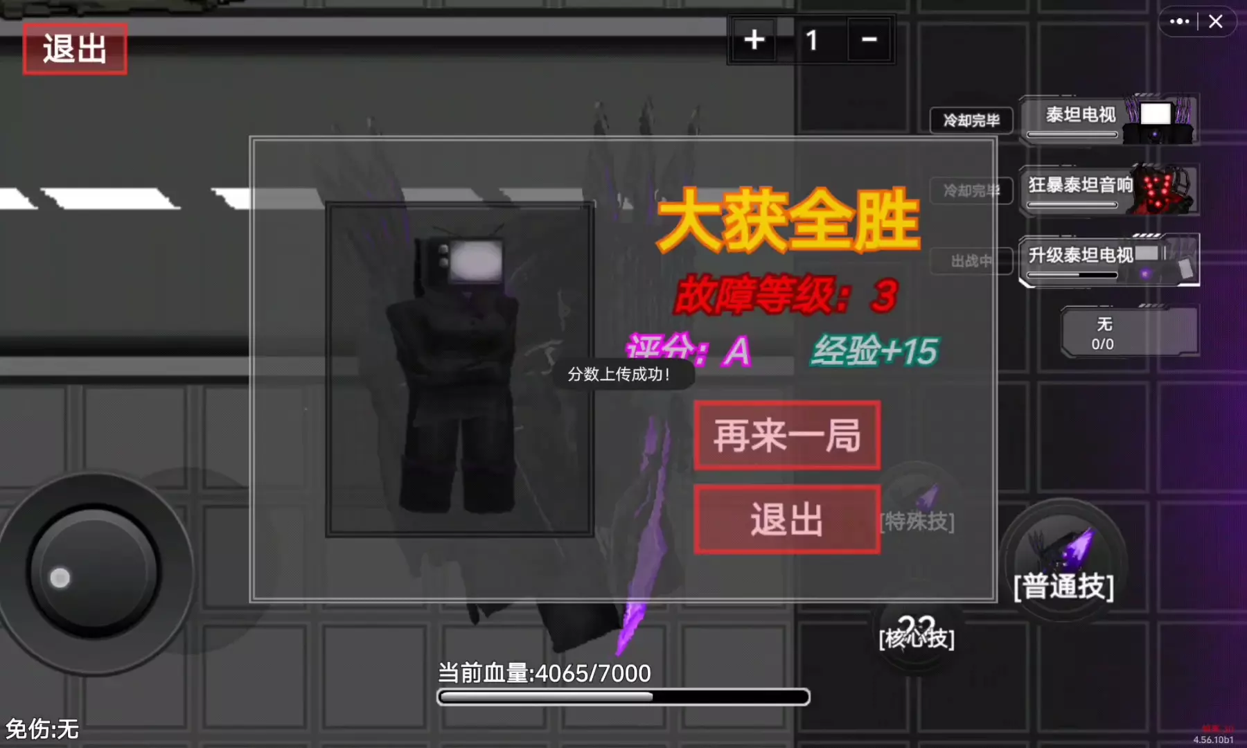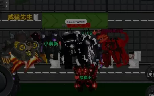 这是创游世界里“skibid故障”的传奇G预告内容,展示了传奇G的战斗界面,可操控它对敌方马桶怪发起攻击,还有伪装者丧尸、泰坦电视等其他角色,同时呈现了游戏的等级奖励、传送门等功能模块。