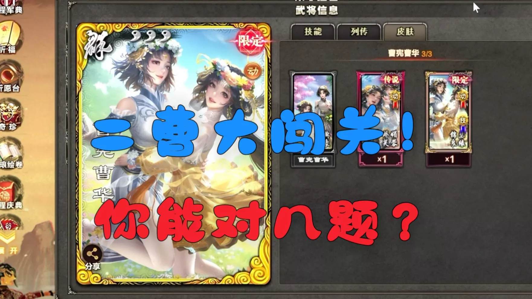 !横屏播放可以打开AI字幕! 直播间http://live.bilibili.往期精彩视频: 三国杀OL武将价格…