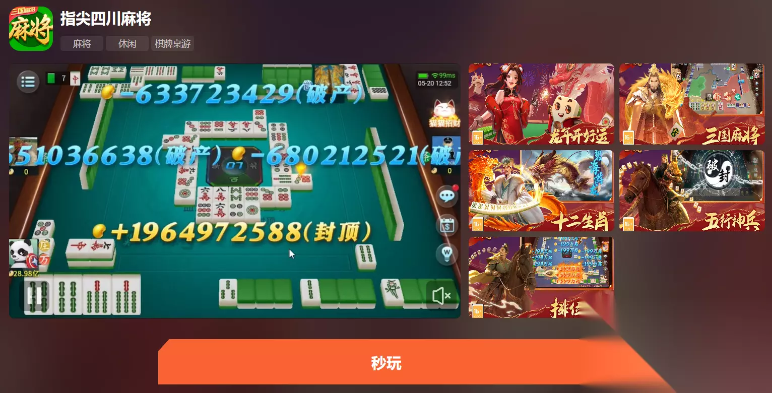 指尖四川麻将无需下载 · 不占空间 · 点击即玩点击在线玩 各位玩家只要直接在电脑点击上方的链接就直接前往云游戏页面了哦,仅需登录一下就能马上玩,不用下载整个过程非常快!