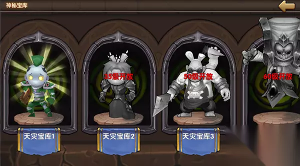 开启时间: 每周一、三、五开启天灾宝库和兽人宝库; 每周二、四、日开启人类宝库、军团宝库和虚空宝库; 宝库等级: 每个宝库里面有四个关卡,玩家们必须达到相对等级,才能挑战更高等级的宝库关卡,关卡等级越高,获得奖励也越丰厚! 第一至四关分别需要达到15级、35级、50级和60级才能进行挑战。