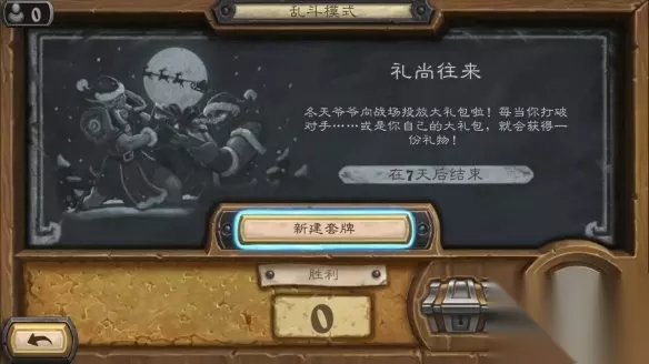 炉石传说乱斗礼尚往来攻略 一、乱斗介绍 礼尚往来是冬幕节传统玩法: 需要组牌 狂野牌池 战场上不时落下礼物箱,打破箱子可得冬幕节礼物(1费,发现一个控制方玩家职业的职业牌并减5费)