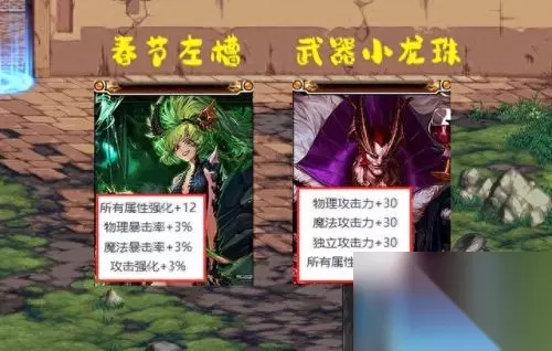 【5、九尾之布罗娜】:左槽部位,所有属强+12,攻击强化+3%,暴击率+3%。这是目前为止出现的左槽最好附魔之一,和往年春节左槽宝珠提升一模一样,绝对是天价道具(其实也因此,很多玩家猜测今年春节宝珠会加强,也不是没有道理)。 【6、暴龙王巴卡尔】:武器部位,所有属强+15,三攻+30。和“小龙珠”属性一模一样,非酋终于圆梦了,大龙珠有价无市,小龙珠就是最好选择 ,不过开服前期肯定很贵。