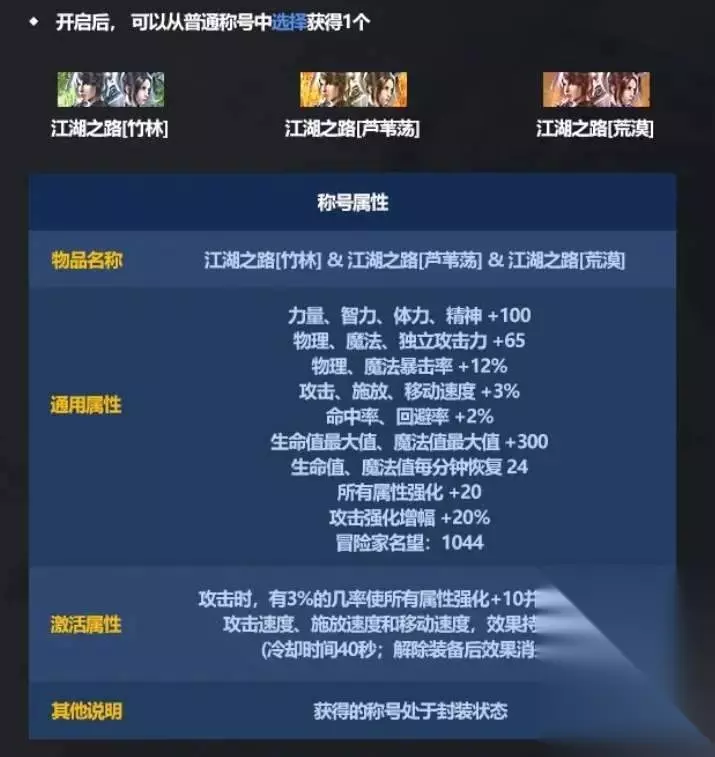 4、自选称号 可以在三个称号中自选一个获取,属性都是一样的,获得的称号处于封装状态。
