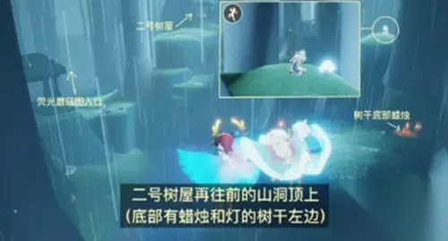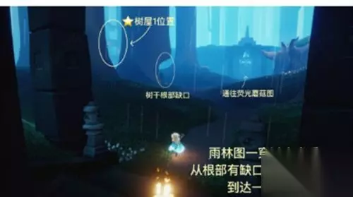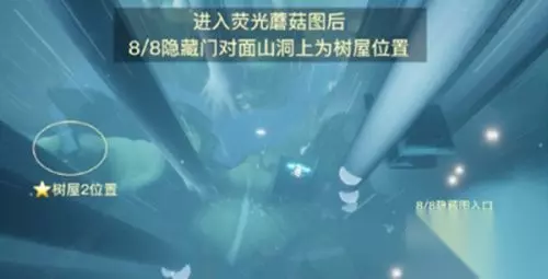 3.进入荧光蘑菇图后8/8隐藏对面山洞上为树屋位置。