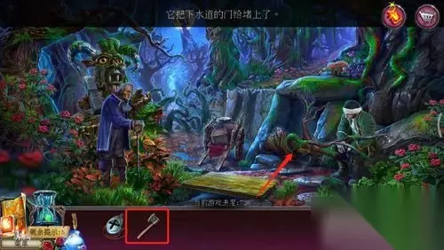 第27关通关攻略 拿到斧头后,来到村外,用斧头砍掉石洞前的断木。